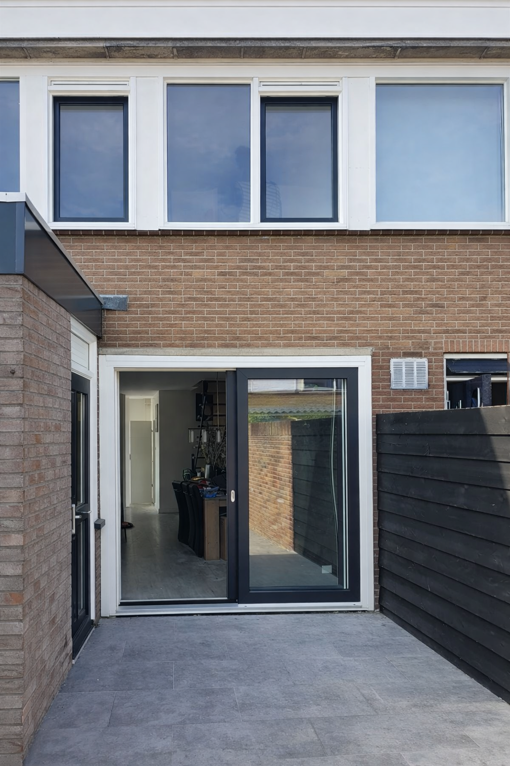 Aan de achterzijde van de woning is een Schüco Easy Slide schuifpui geplaatst. Deze duurzame schuifpui combineert gebruiksgemak met uitstekende isolatie en een slank profiel, waardoor er veel lichtinval ontstaat zonder concessies te doen aan comfort of veiligheid. Ideaal voor dagelijks gebruik en geschikt voor jarenlang probleemloos functioneren.